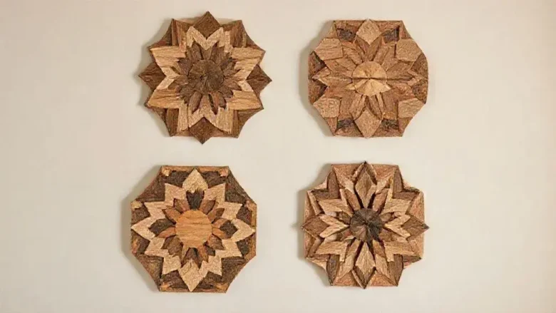 Peças decorativas geométricas feitas manualmente com retalhos de madeira de demolição: transforme seu lar!