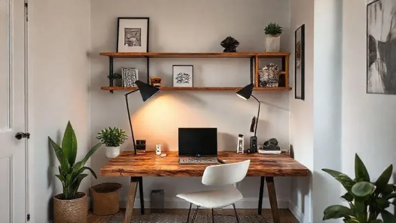 Ideias de escrivaninhas compactas de madeira de demolição para home office que encantarão